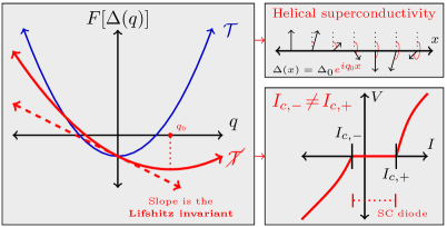 Several physical phenomena in superconductors, such as helical superconductivity and the diode effect, rely on breaking time-reversal symmetry. This symmetry-breaking is usually accounted for via the Lifshitz invariant, a contribution to the free energy which is linear in the phase gradient of the order parameter. In dispersive single-band superconductors with conventional pairing, the Lifshitz invariant can be computed from the asymmetries of the spectrum near the Fermi surface. We show that in multi-band superconductors, the quantum geometry also contributes to the Lifshitz invariant, and this is the dominant contribution when the low-energy bands are flat. We also analogously demonstrate quantum-geometry-driven commensurate-incommensurate transitions in charge and pair density waves.